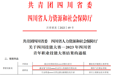▌飞工学院项目斩获2023年四川省青年职业技能大赛管理创新类省级银奖,获选推送至第十八届“振兴杯”全国决赛