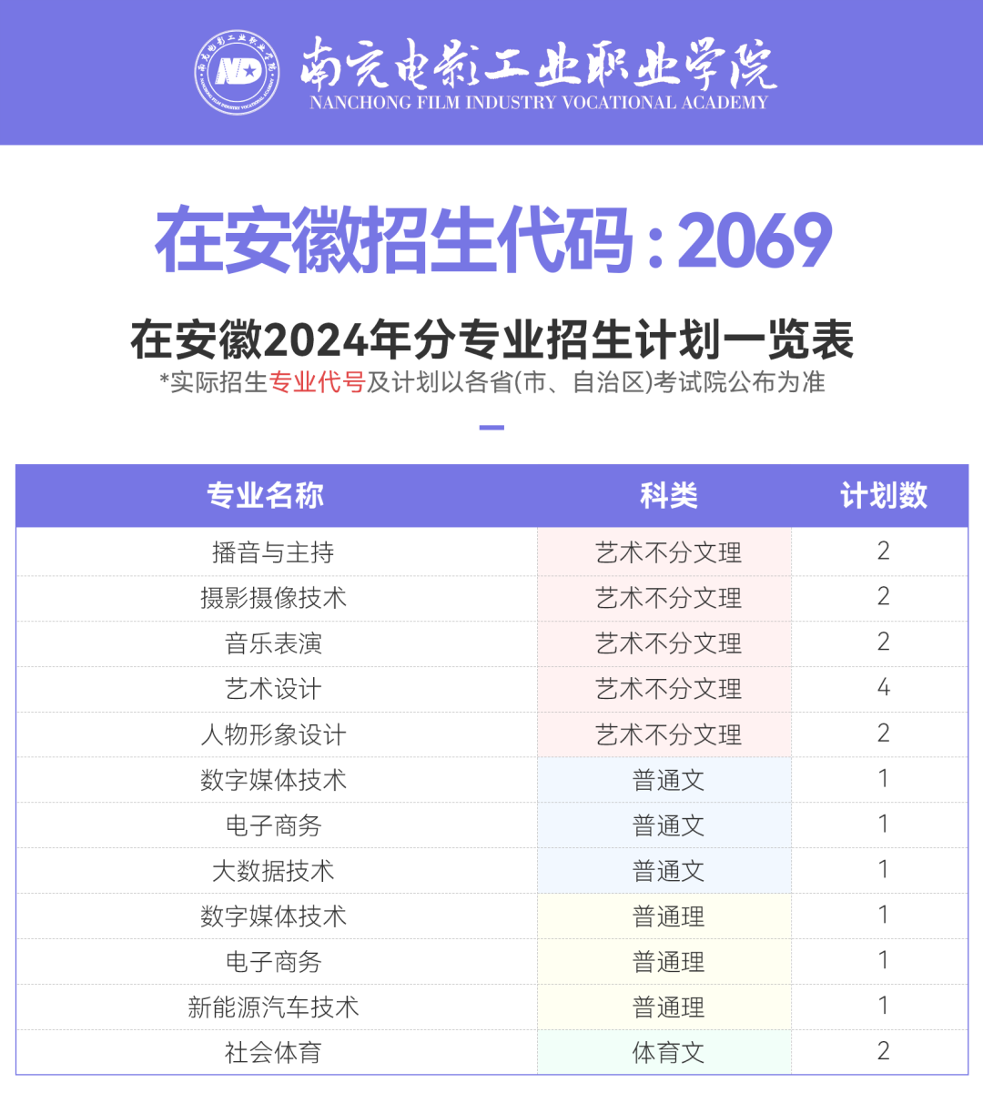 2024年南充电影工业职业学院安徽省招生计划