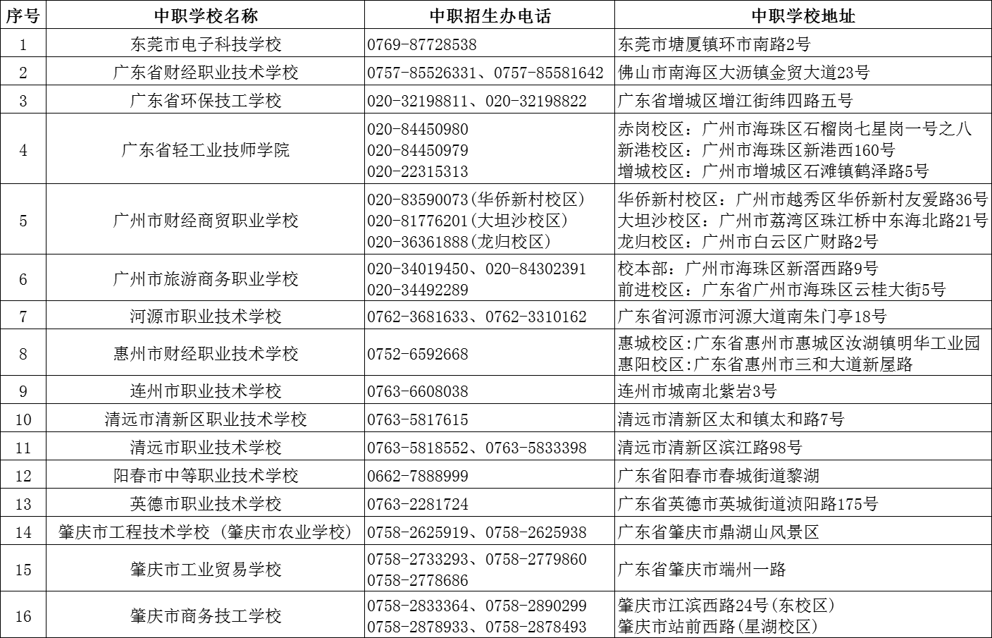 中高职三二分段招生。指在中职学校和高职院校选取对应专业,制定中职学段(三年)和高职学段(二年)一体化的人才培养方案,分段开展教学活动。其培养目标是以就业为导向,为广东产业升级、经济发展方式转变培养高层次技能型专业人才。中职学段招生对象为中职学段招生对象为广东户籍或符合各地级以上市2022年“中考”报名条件的外省户籍应届初中毕业生。