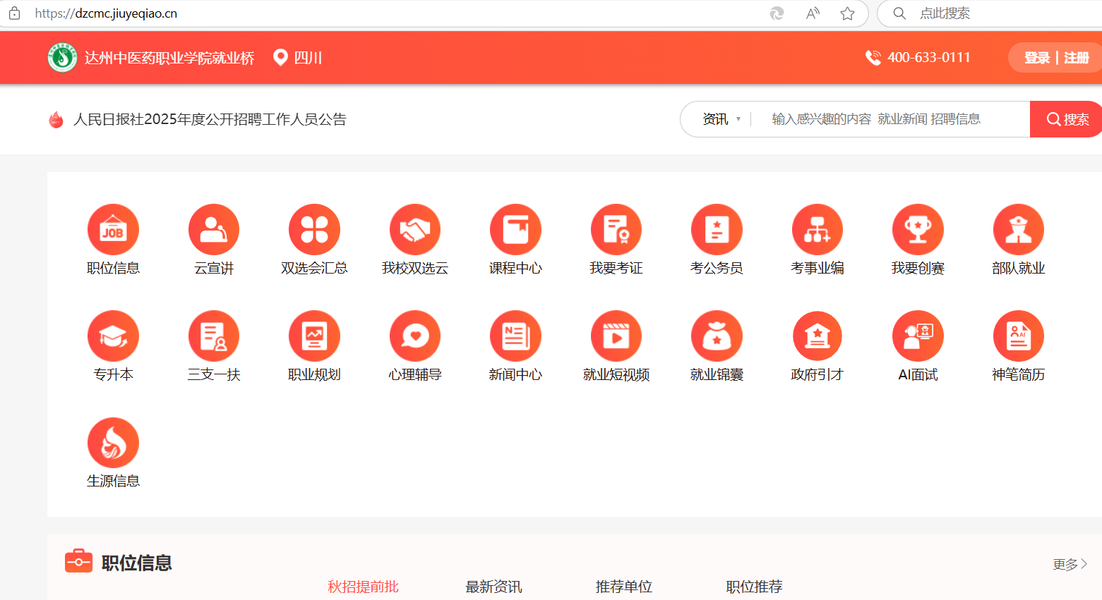 达州中医药职业学院专属就业桥:http://zjc.dzcmc.com/
