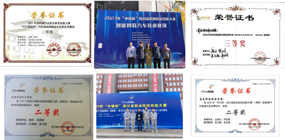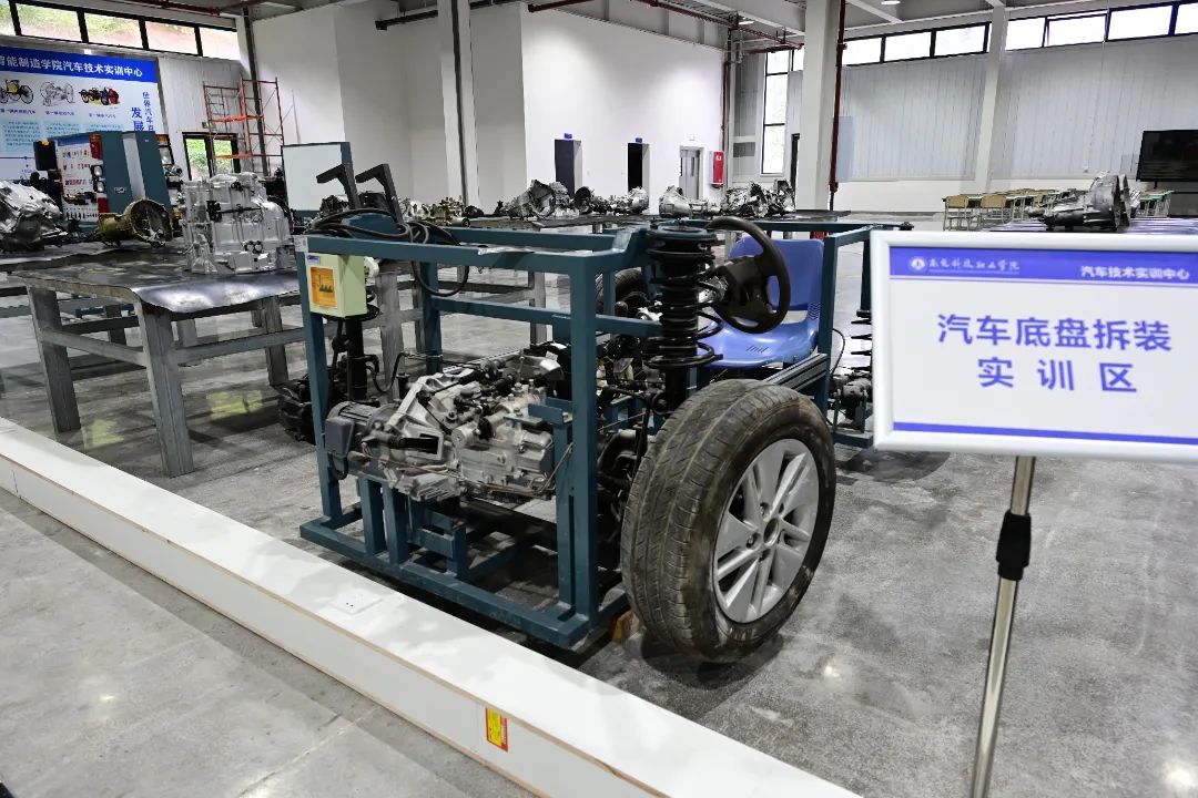 汽车技术实训中心始建于2019年,占地面积超2500平方米,涵盖“整车调试返修实训区”、“新能源汽车动力电池实训区”、“新能源汽车电驱系统实训区”和“智能网联汽车测试装调实训区”等12个实训区和“单片机实训室”等2个实训室,拥有比亚迪秦EV汽车(2022年、2023年全国职业院校技能大赛平台)、吉利EV系列汽车、比亚迪秦DM-i汽车、智能小车(2022年四川工匠杯职业技能大赛平台)等实训车辆和智能汽车传感器测试装调平台、动力电池实训平台等先进汽车实训设备,总价值超500万元。实训中心集理实一体化教学、科研、技艺传承、技能竞赛和社会服务于一体,承接各专业理论教学、实践教学、研究所科研、大师工作室技艺传承、技能大赛训练、企业员工培训和院校师资培训等工作。