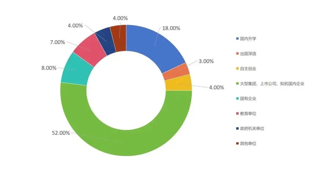 学校高度重视毕业生就业工作,不断强化组织机构和制度建设,拓宽就业渠道搭建信息化就业服务平台,加强就业指导,提升就业质量。成立毕业生就业工作领导小组,以就业为导向,紧紧围绕人才培养目标,搭建高质量的产教融合平台。近年来校企合作单位总数已超过500家,校外实习基地300余个。学校近几年毕业生就业去向落实率均高于全省就业去向落实率。
