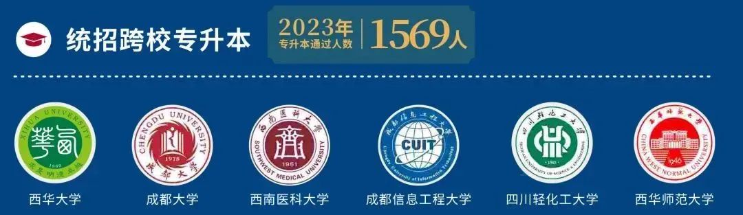 在2023年四川省普通“专升本”考试中,我校学子再获佳绩,共1569名学子分别被西华大学、四川轻化工大学、宜宾学院、乐山师范学院、四川旅游学院等10余所高校录取。