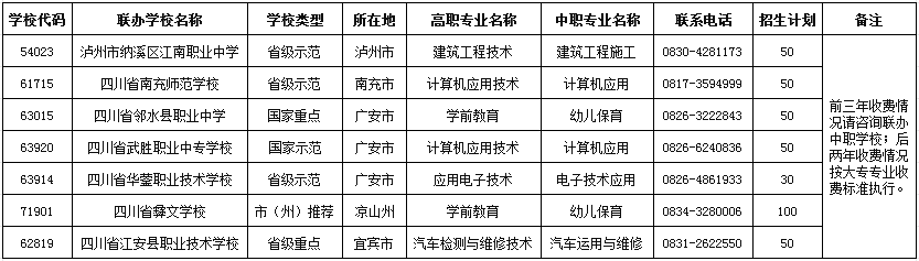 2.中高职衔接五年贯通培养大专学生前三年在联办中职学校就读,第四年转录到广安职业技术学院就读,转录时淘汰比例原则不低于5%;毕业时颁发广安职业技术学院专科(高职)毕业证书;毕业生可按照毕业当年“专升本”政策要求,通过考试或技能免试等途径,升入本科层次教育学习。