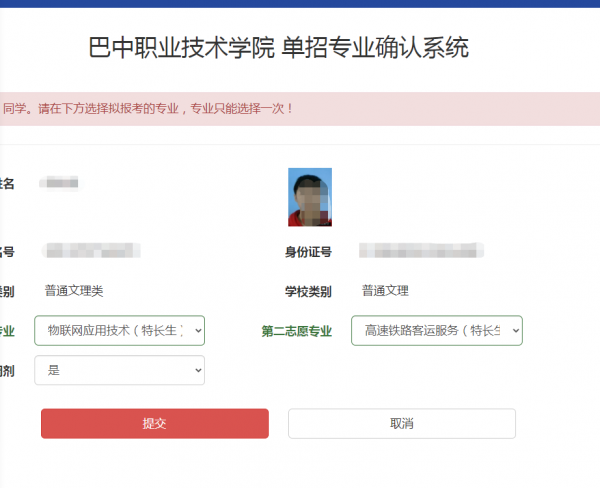 5.考生完成以上五点后即完成单独招生报名全部工作,学院招生就业处将对考生资格进行审查,具体结果会以电话方式通知考生,请保持电话畅通。