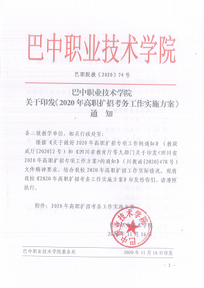 根据《关于做好2020年高职扩招专项工作的通知》(教职成厅[2020]2号)和《四川省教育厅等九部门关于印发<四川省2020年高职扩招专项工作方案>的通知》(川教函[2020]478号)文件精神要求,。