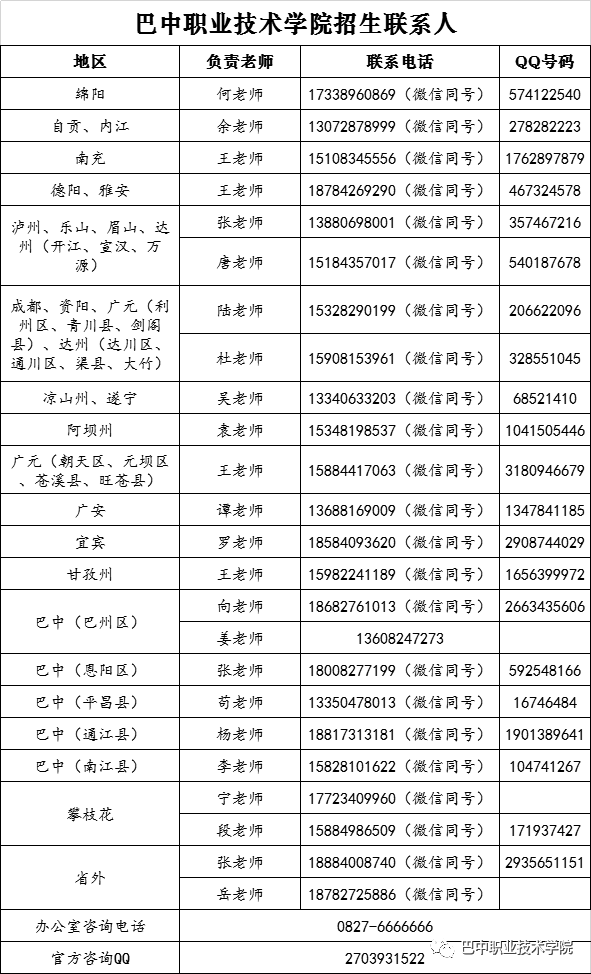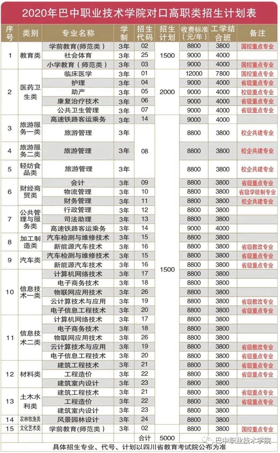5.我在巴职等你||你理想的大学生活,巴职如你所愿6.我在巴职等你||我在医学院等你,梦想从这里起航。7.我和巴中职业技术学院有个约定8.我在巴职等你||我在教育学院等你,让我们从这里走向世界。9.我在巴职等你||我在理工与经管学院等你,选择巴职,成就未来。10.我在巴职等你||巴中职业技术学院2020年各省招生计划出炉啦!11.我在巴职等你||@高考学子,选择巴职的N个理由!专业篇: