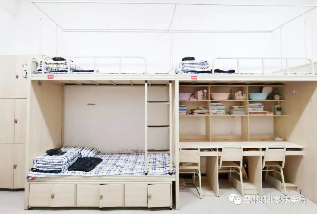 03.住在巴职当年学校最吸引小编的还有一点,那就是五脏俱全,配套完善的住宿条件啦!走进巴职的学生公寓,你感受到的是明亮与干净,装饰风格简洁大方,光亮的地板砖、独立的卫生间、24小时供应的热水、公寓中的洗衣机……几个舍友住在一起,亲切温暖而又安静。