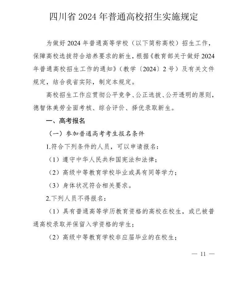 四川省2024年普通高校招生实施规定发布