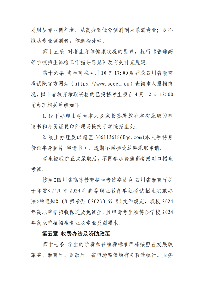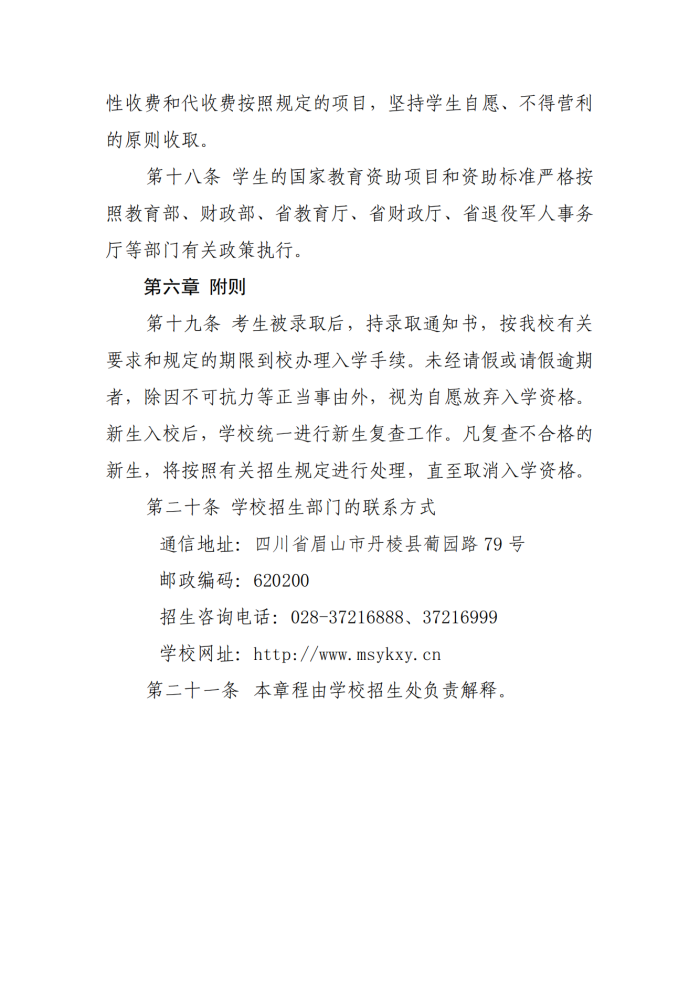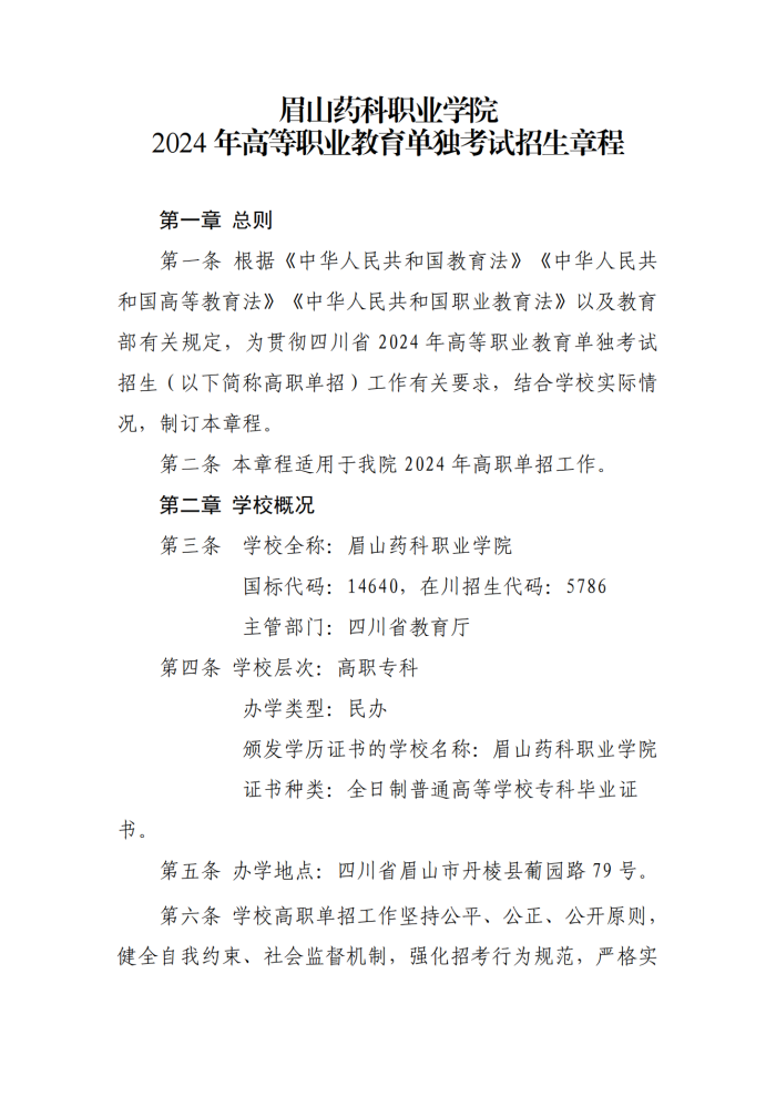 眉山药科职业学院2024年高等职业教育单独考试招生章程