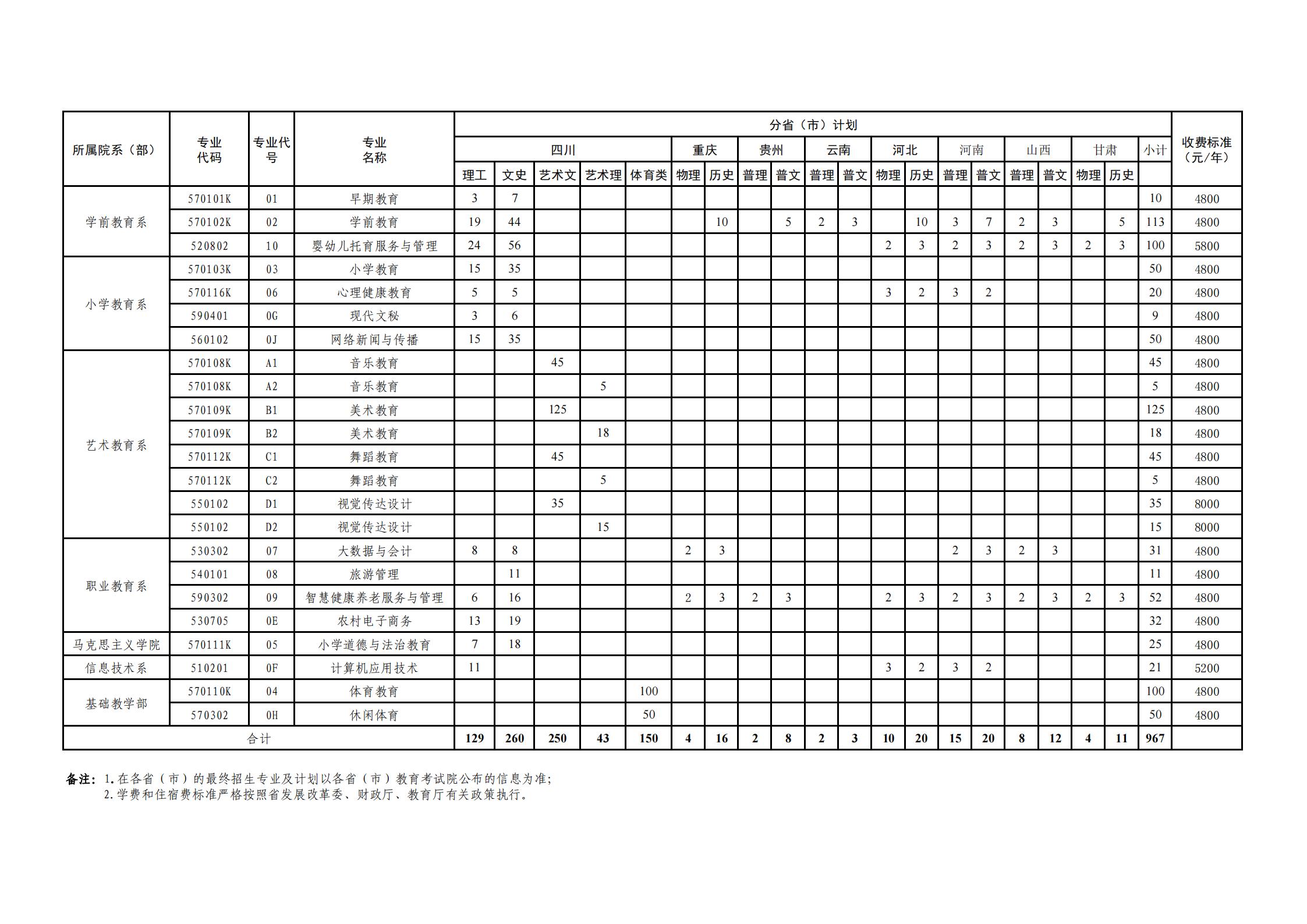 西昌民族幼儿师范高等专科学校2024年普通高考招生计划