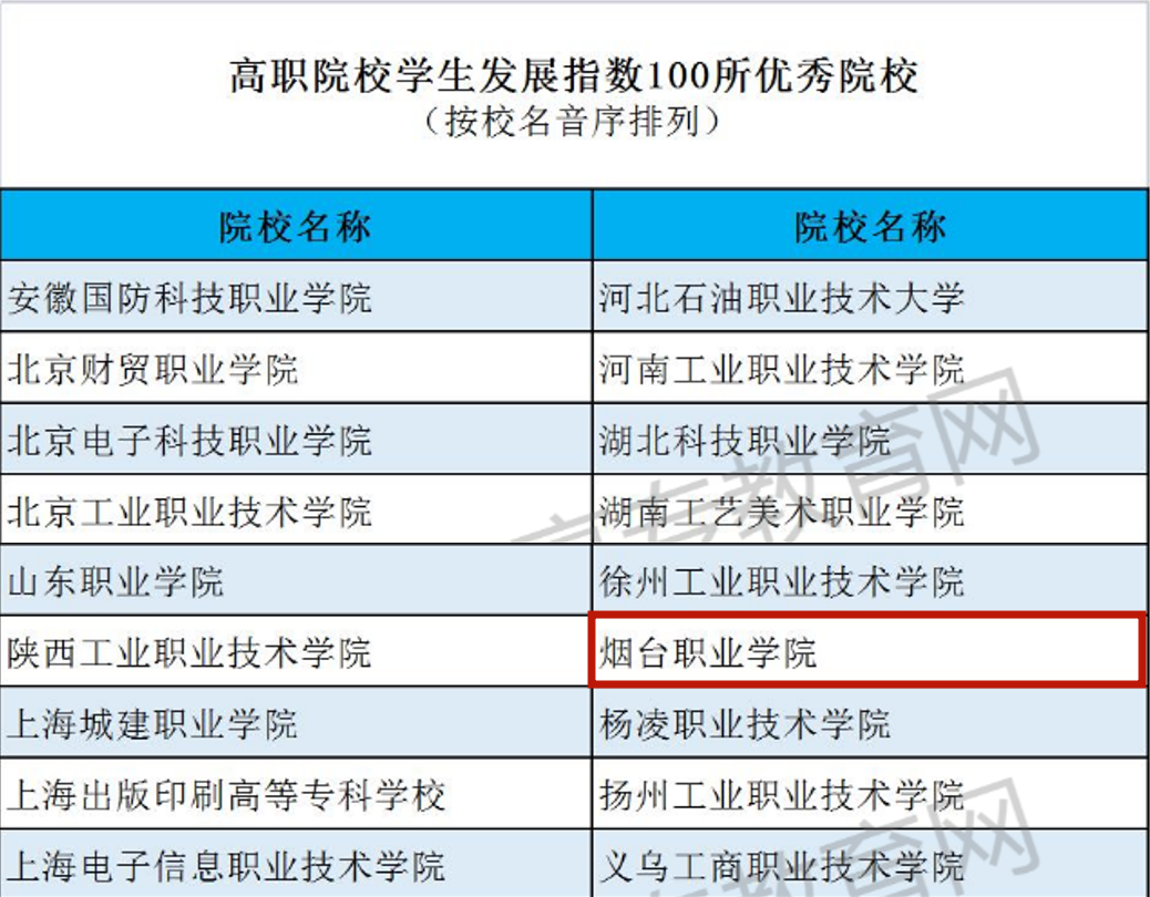 近日,由中国教育科学研究院、全国职业高等院校校长联席会议编制的《2022中国职业教育质量年度报告》发布。烟台职业学院入选“60所高职院校服务贡献典型院校”“高职院校学生发展指数100所优秀院校”及“高职院校教师发展指数100所优秀院校”三项榜单。