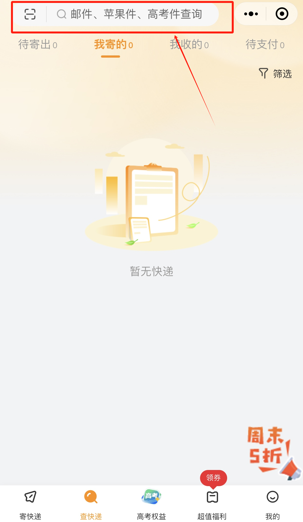 2.点击下方查快递