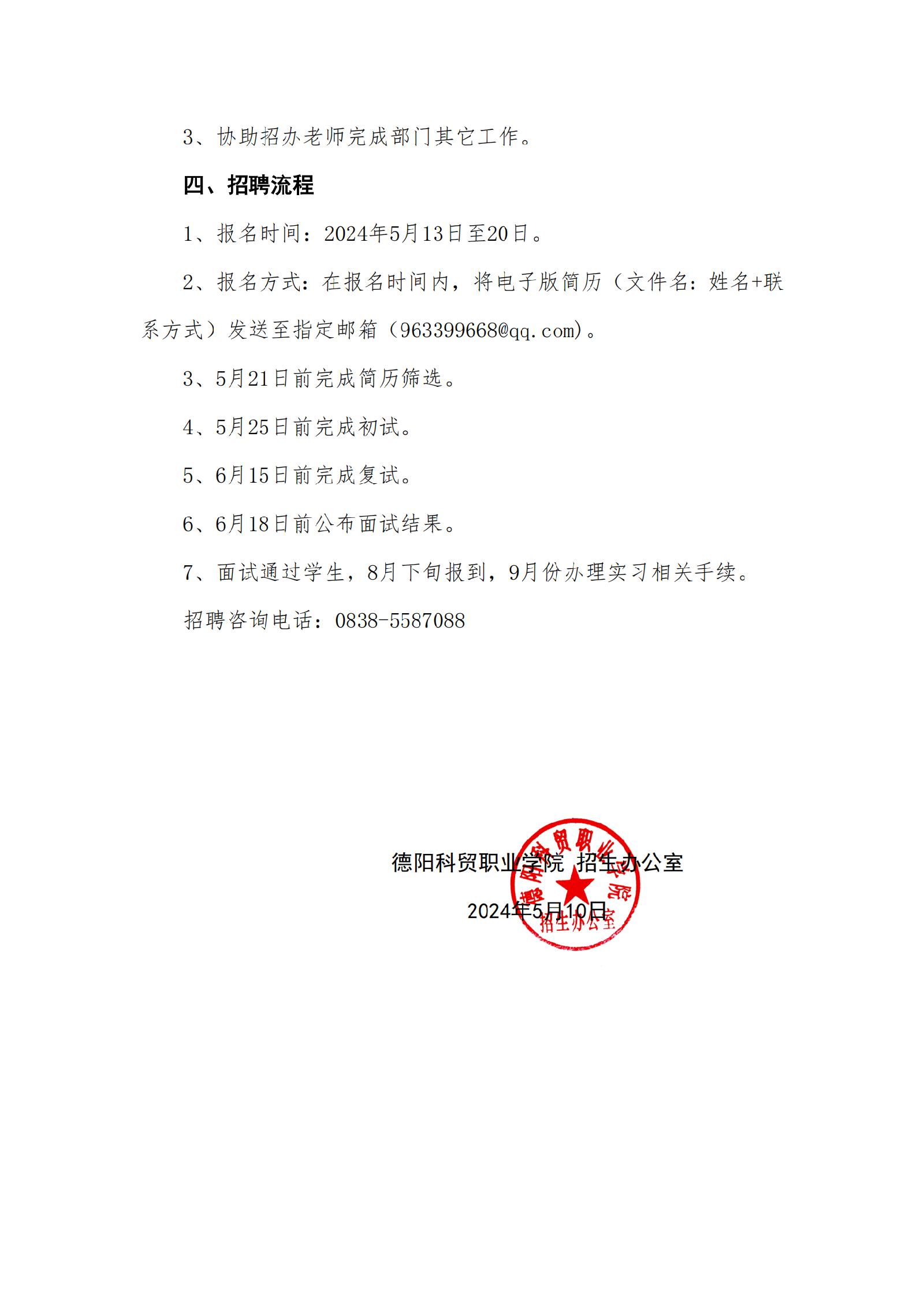 德阳科贸职业学院招生办公室2024-2025学年实习生招聘公告