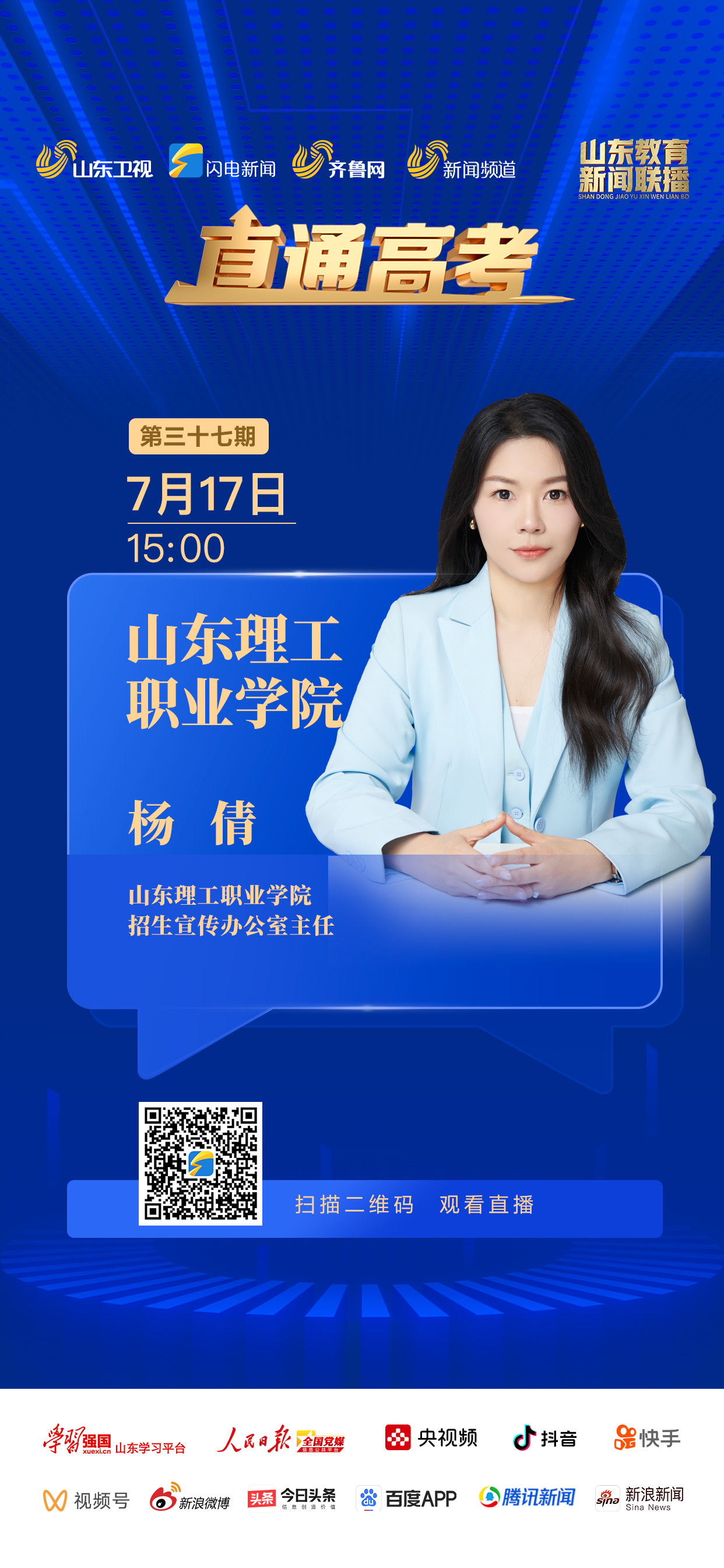 为精准服务考生志愿填报需求,用权威信息帮助考生和家长做出最准确选择,山东广播电视台联合“学习强国”山东学习平台共同推出《直通高考》之齐鲁高校环游记,7月17日15:00,跟随山东广播电视台主播一起走进山东理工职业学院,闪电新闻现场直播,敬请关注。