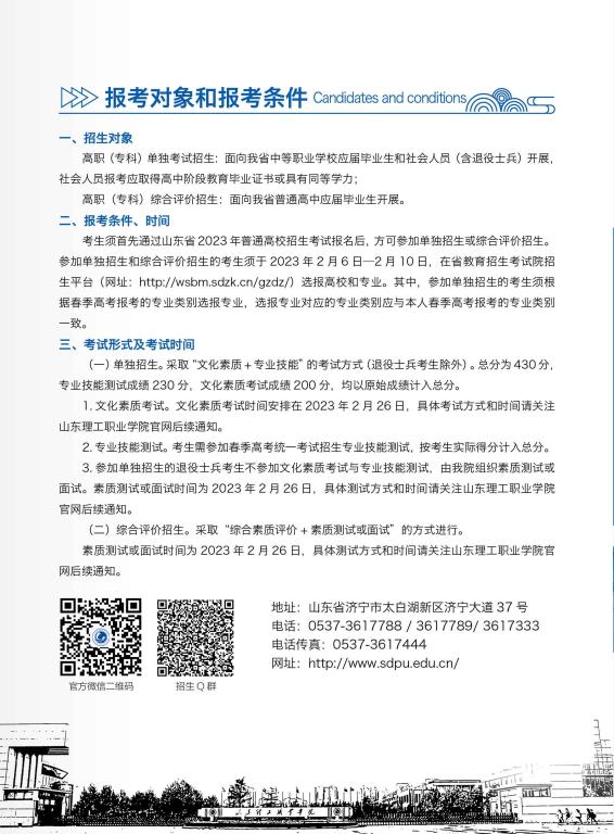 2023年山东理工职业学院单独招生、综合评价招生简章