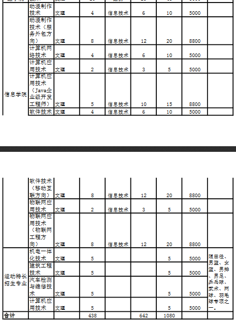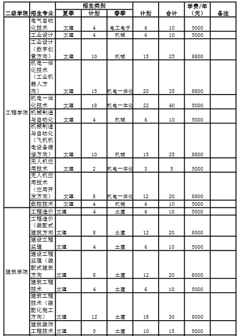 2018年单独招生计划