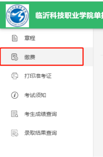 第三步:点击左侧的“缴费”菜单,打开缴费页面。