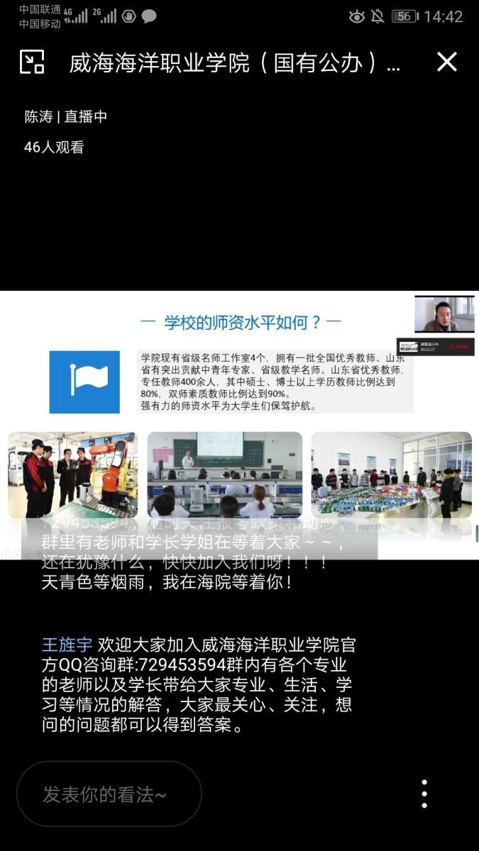 3月24日下午,招生就业处主动对接东营滨海教育机构、正兴中学等生源校,通过“群课堂”为生源校300余名考生带来了一场别开生面的招生宣讲会。宣讲老师从建设海院的初衷开始讲起,将学院发展与国家战略深度结合,详细解读了学院的综合实力、就业前景、校园环境、单招、综合评价政策等内容,使考生对我院有了更深的了解,激发了考生报考我院的热情。