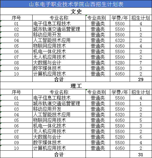 山东省春考招生计划