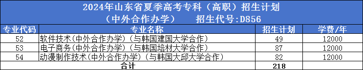 山东省夏考(中外合作)招生计划