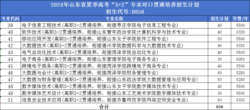 山东省夏考“3+2”专本贯通招生计划