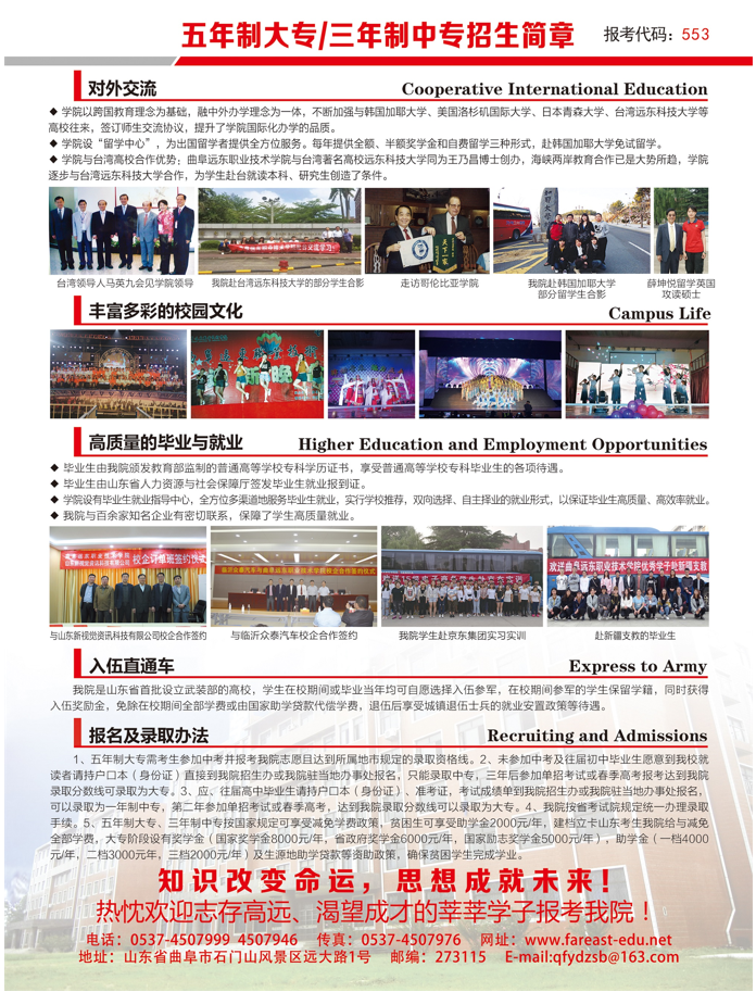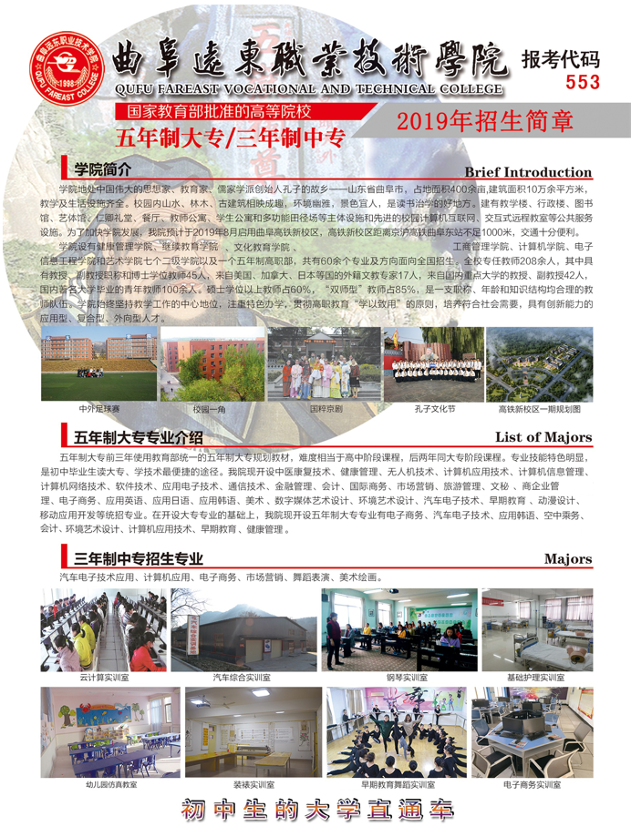 曲阜远东职业技术学院2019年五年制大专招生简章