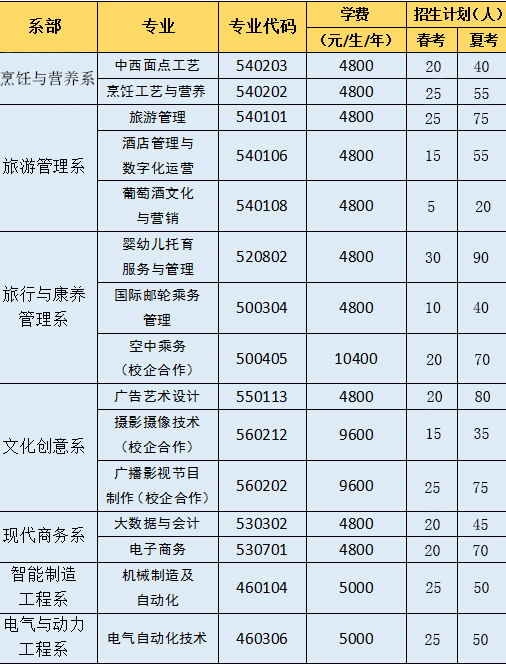 烟台文化旅游职业学院2021年专科(高职)招生计划