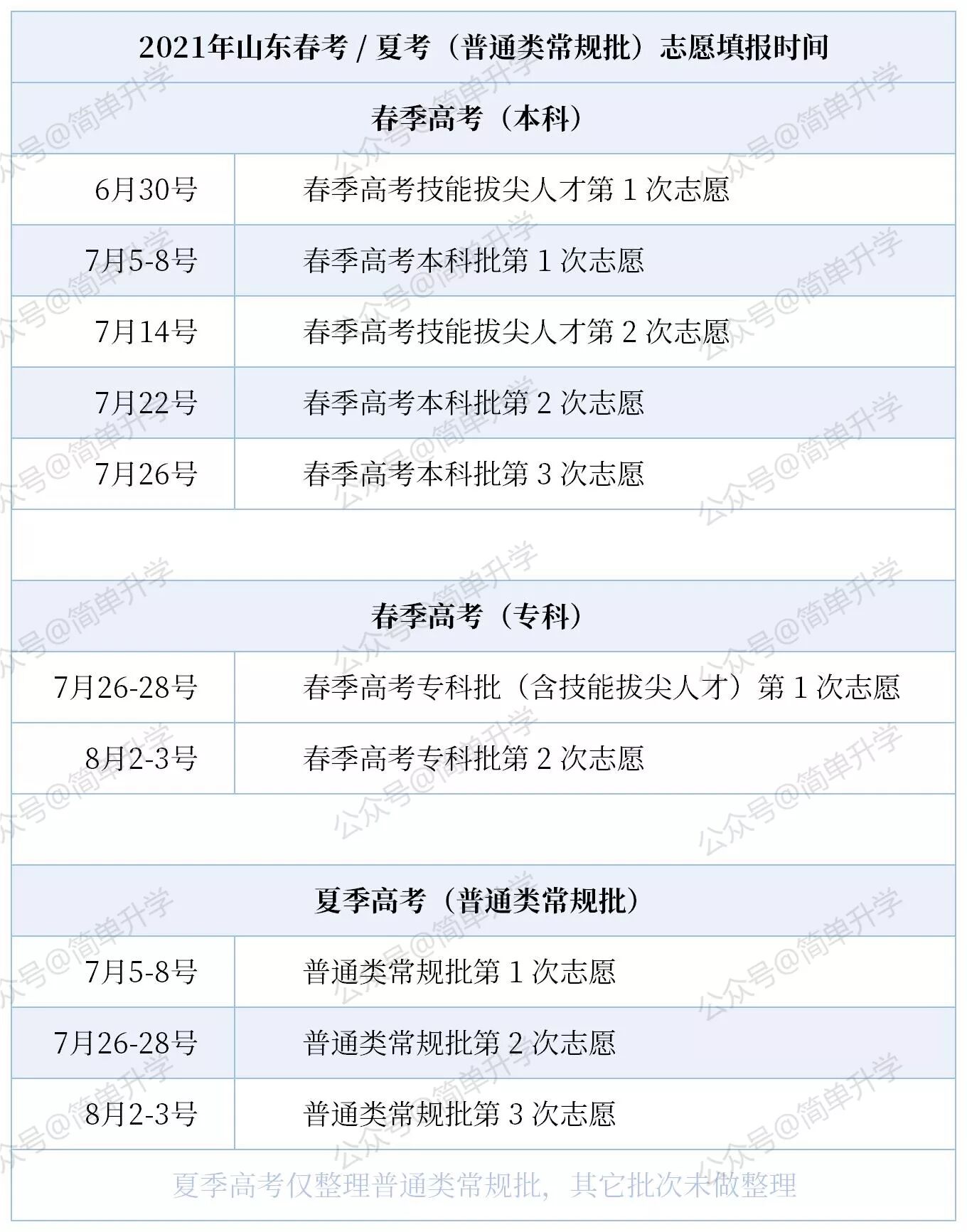 2021年山东春考/夏考(普通类常规批)志愿填报时间