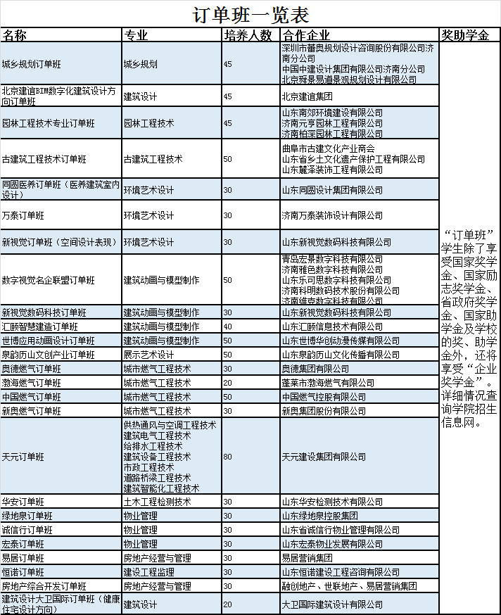 2020学院订单班一览表