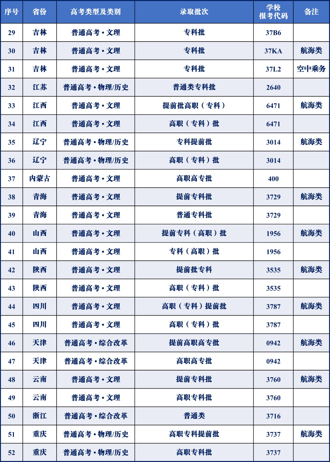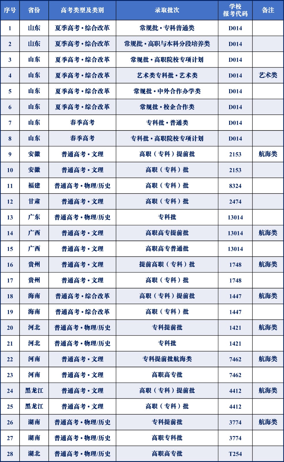 青岛港湾职业技术学院2023年各省录取批次及报考代码一览表