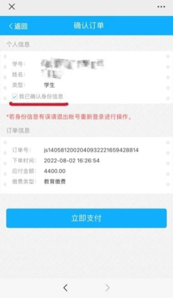 (4)点击学生缴费 (5)选择缴费年度 (6)确认身份信息