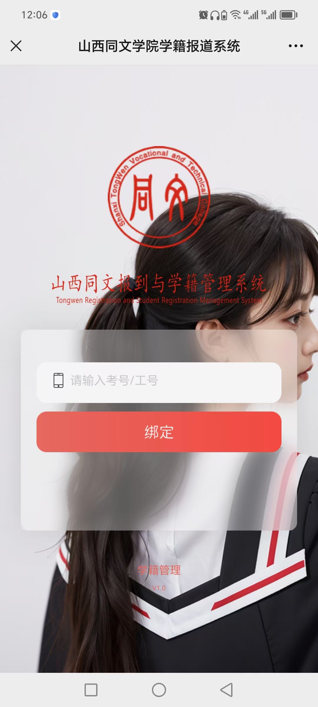 请大家扫码登录新生报到系统后,在出现的图像采集页面,利用手机采集学生本人图像信息,此次采集的照片将用于绑定学生就餐卡,就餐时通过人脸识别进行就餐,请同学们认真对待。