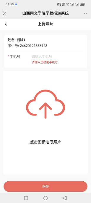 3、在出现的页面中点击“点击图标选取照片”将按“采集图像信息要求”拍摄的照片进行上传。