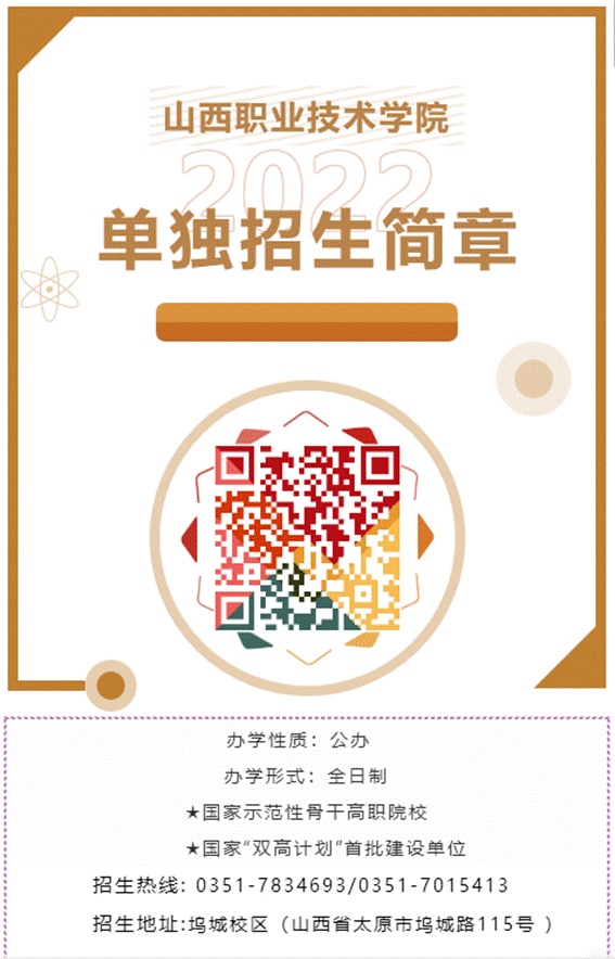 欢迎扫二维码查看山西职业技术学院2022年单独招生简章