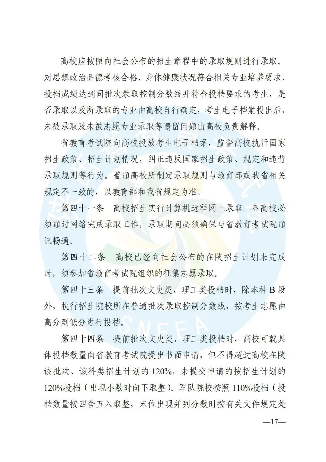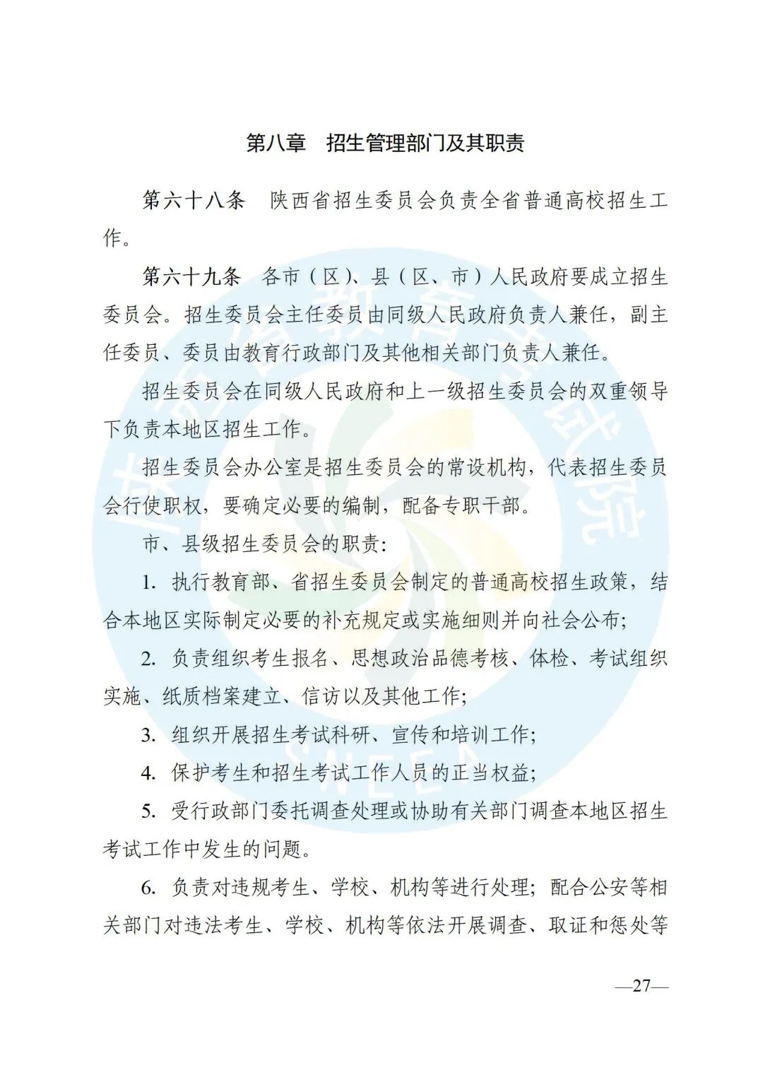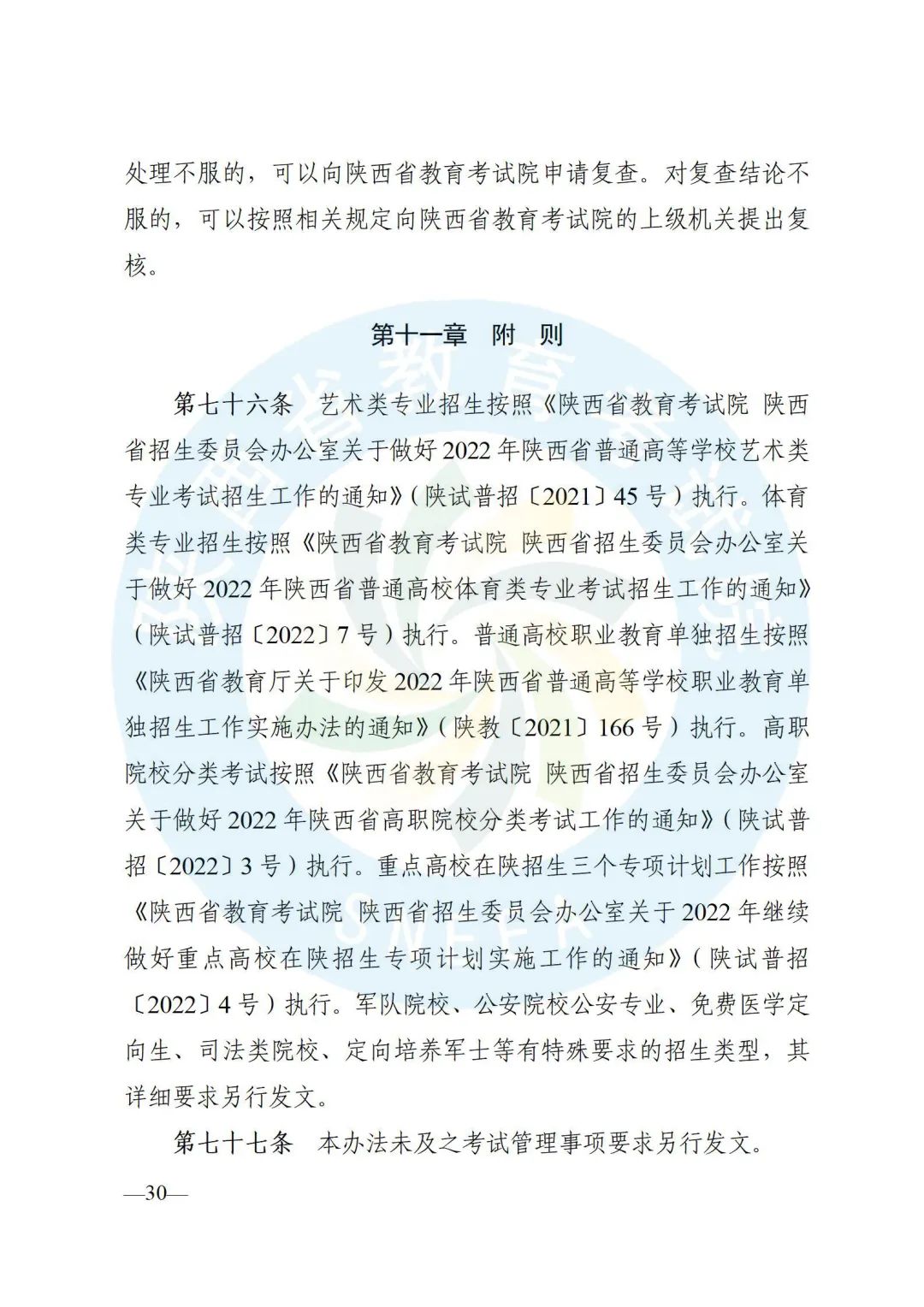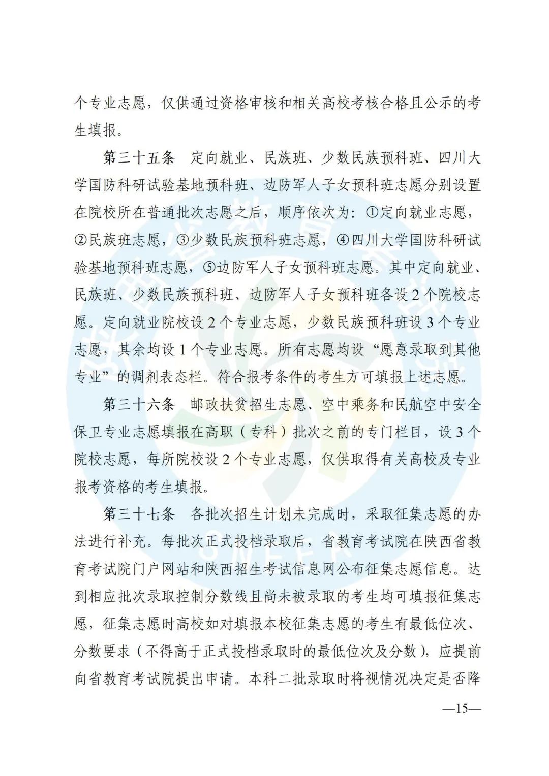 陕西省招生委员会办公室印发了