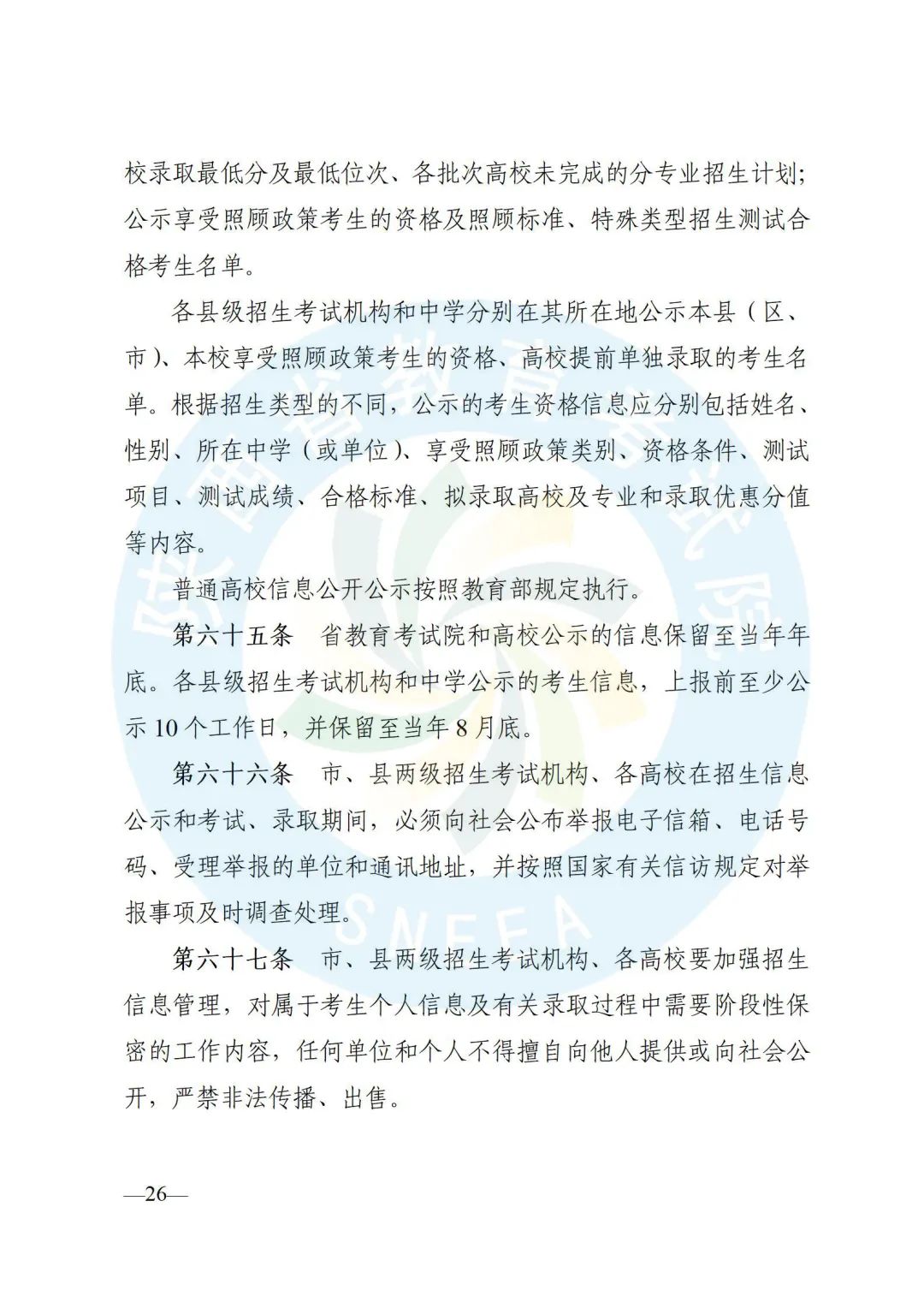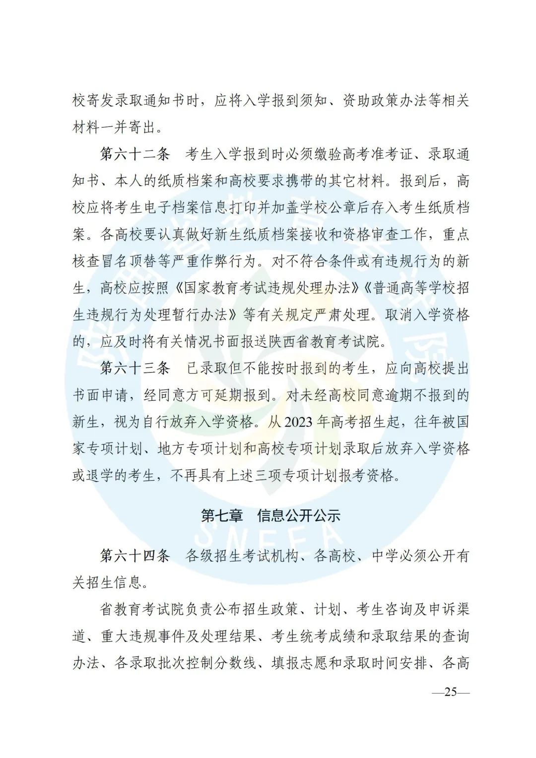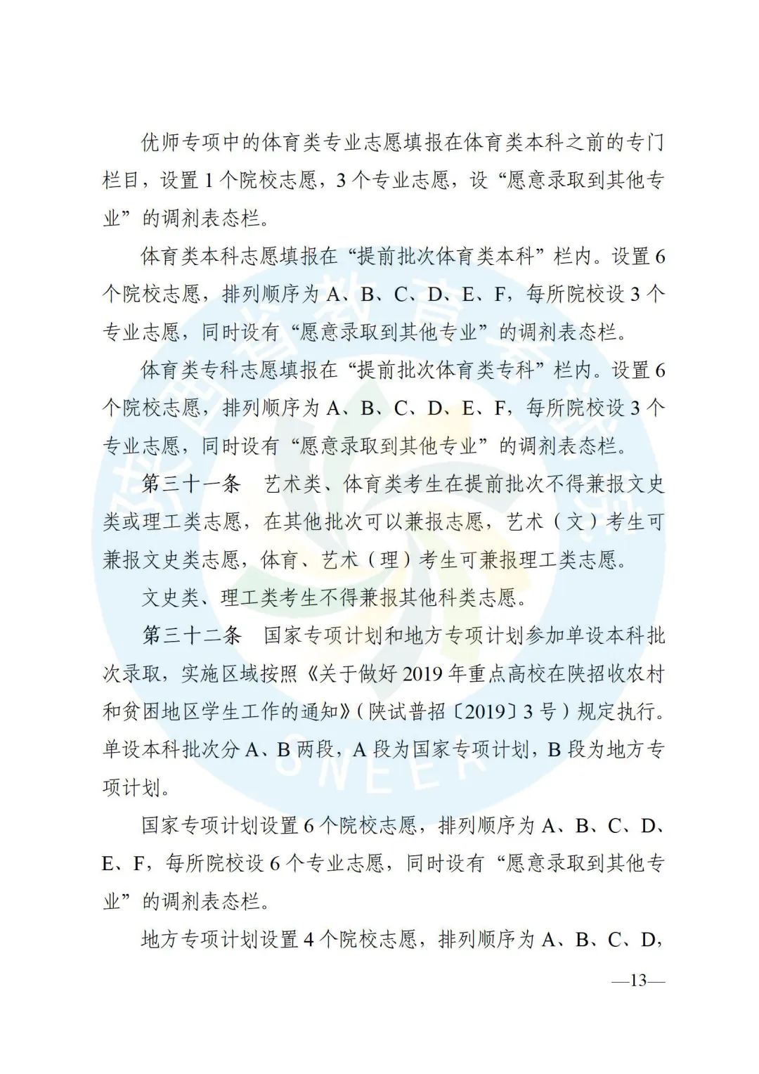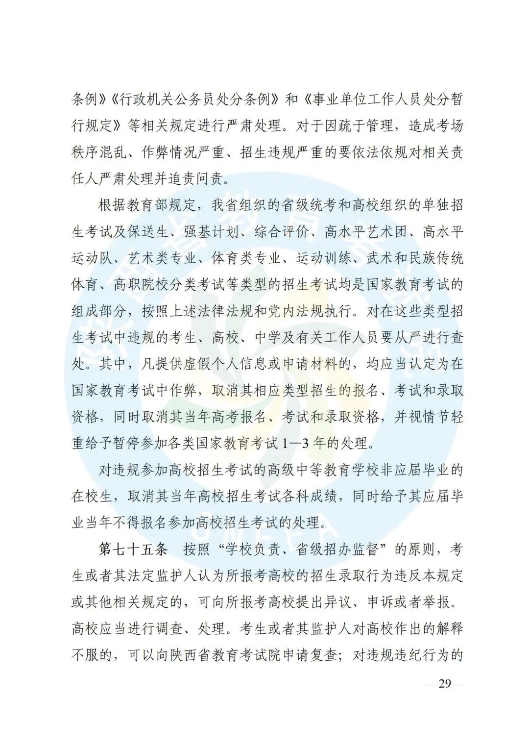 陕西省招生委员会办公室印发了