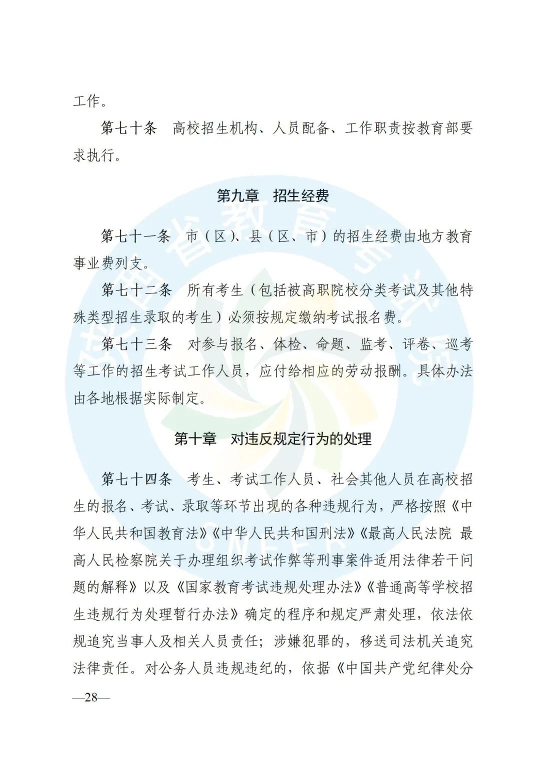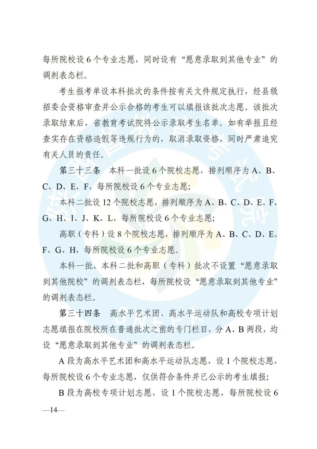 考试、评卷、志愿填报、招生录取等政策。