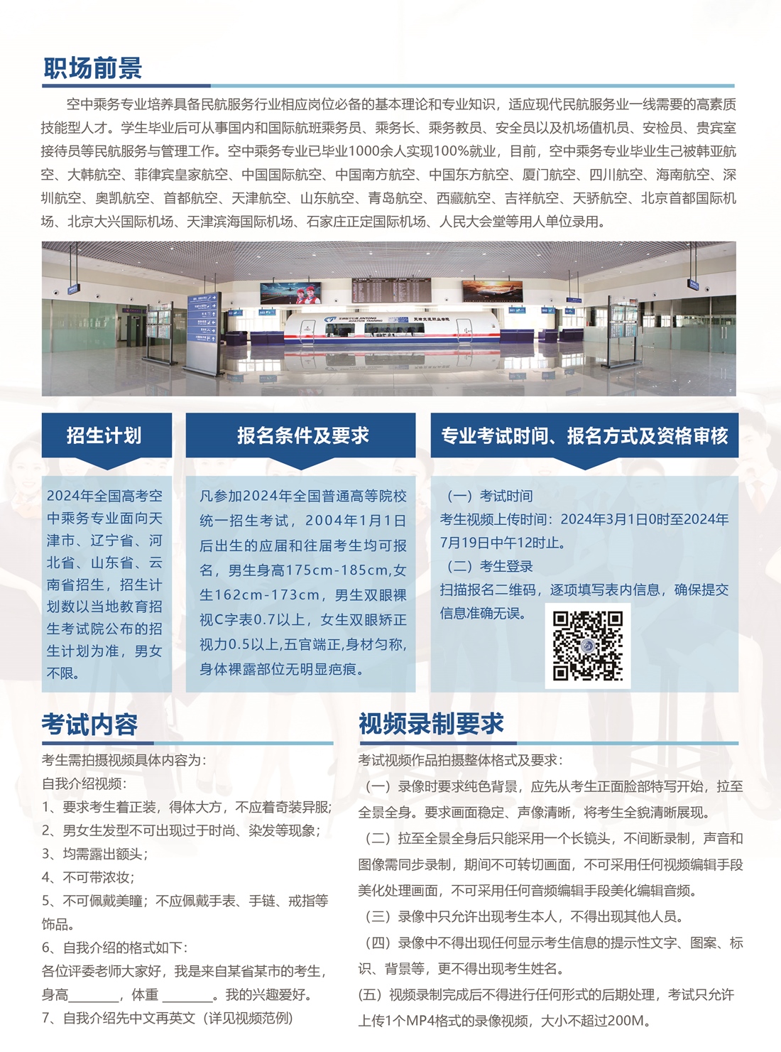 2024年空中乘务专业招生简章(面向全国高考考生)