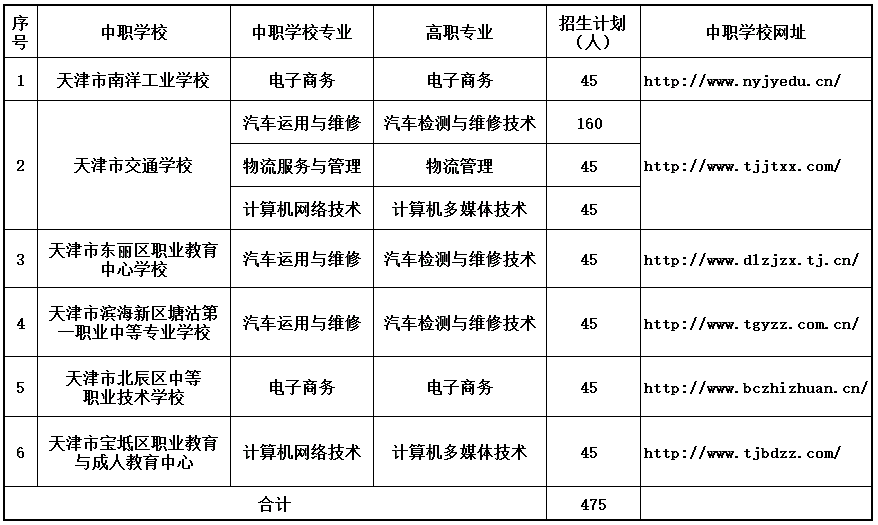 2015年天津交通职业学院“三二分段中职接高职”招生计划及合作校信息