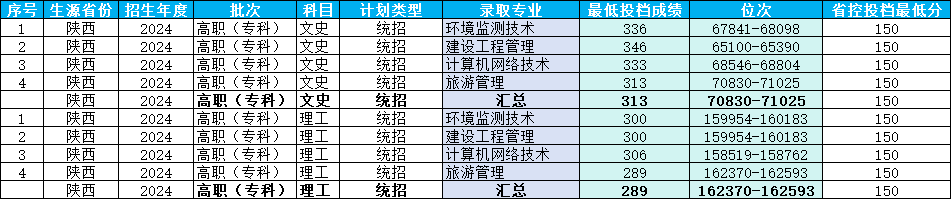 2024年陕西省高职录取最低分数线