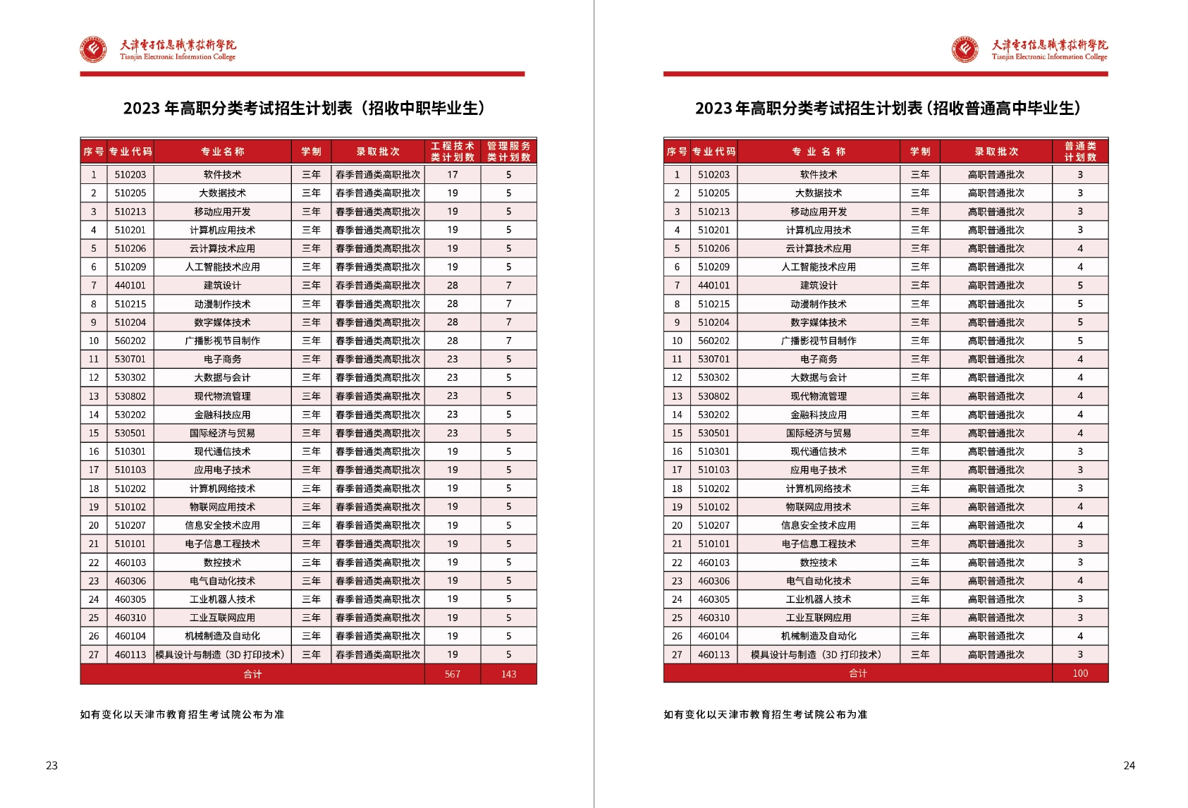 天津电子信息职业技术学院2023年春季招生简章