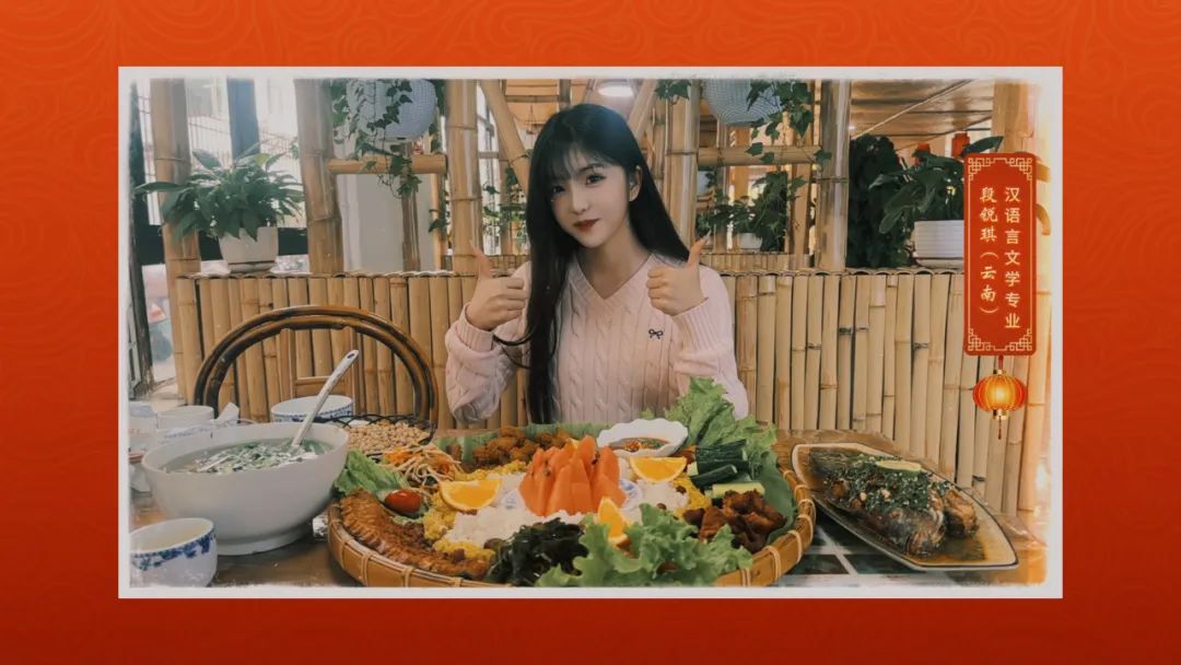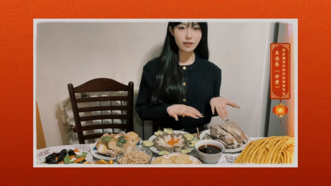 和来自西安翻译学院学前教育专业的王佳荣分别为大家介绍云南傣族的手抓饭以及甘肃的手抓羊肉 发子面肠 酿皮子等并祝福大家新年快乐