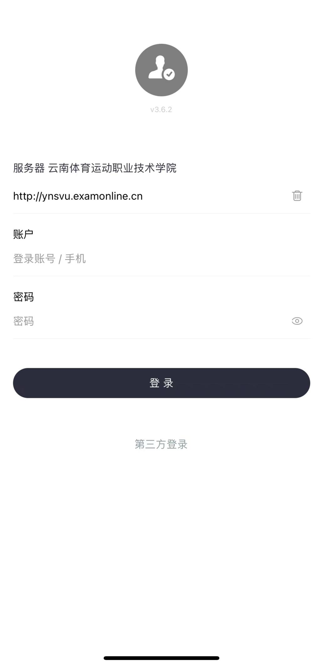 2、打开下载好的应用,在服务器中输入:云南,选择:云南体育运动职业技术学院