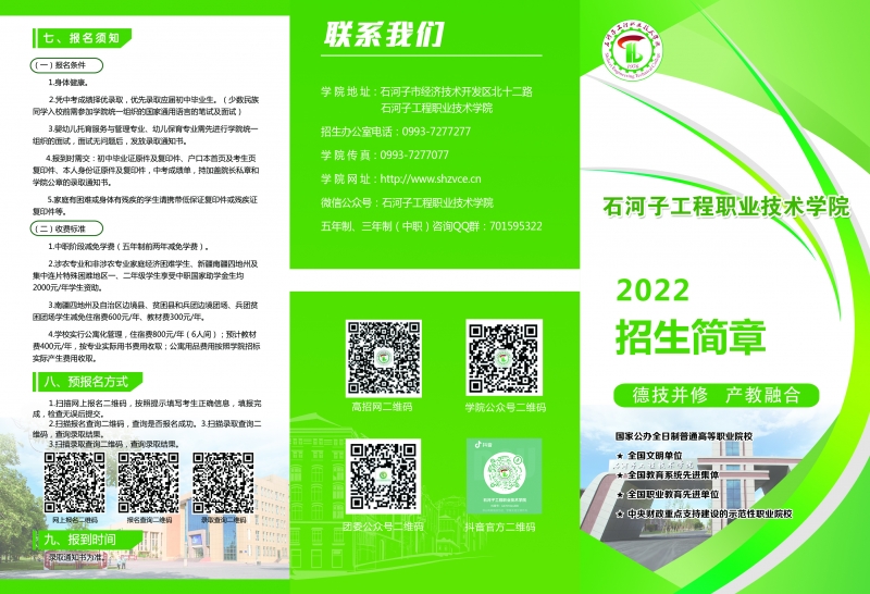 石河子工程职业技术学院2022年五年制、中职(三年制)招生简章