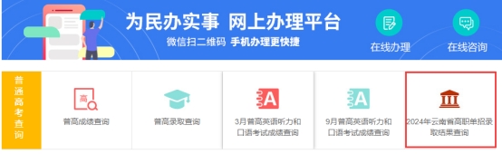 2024年高职单招录取结果查询入口已在云南省招考频道公布,考生可登陆云南省招考频道进行查询。具体查询事项如下: