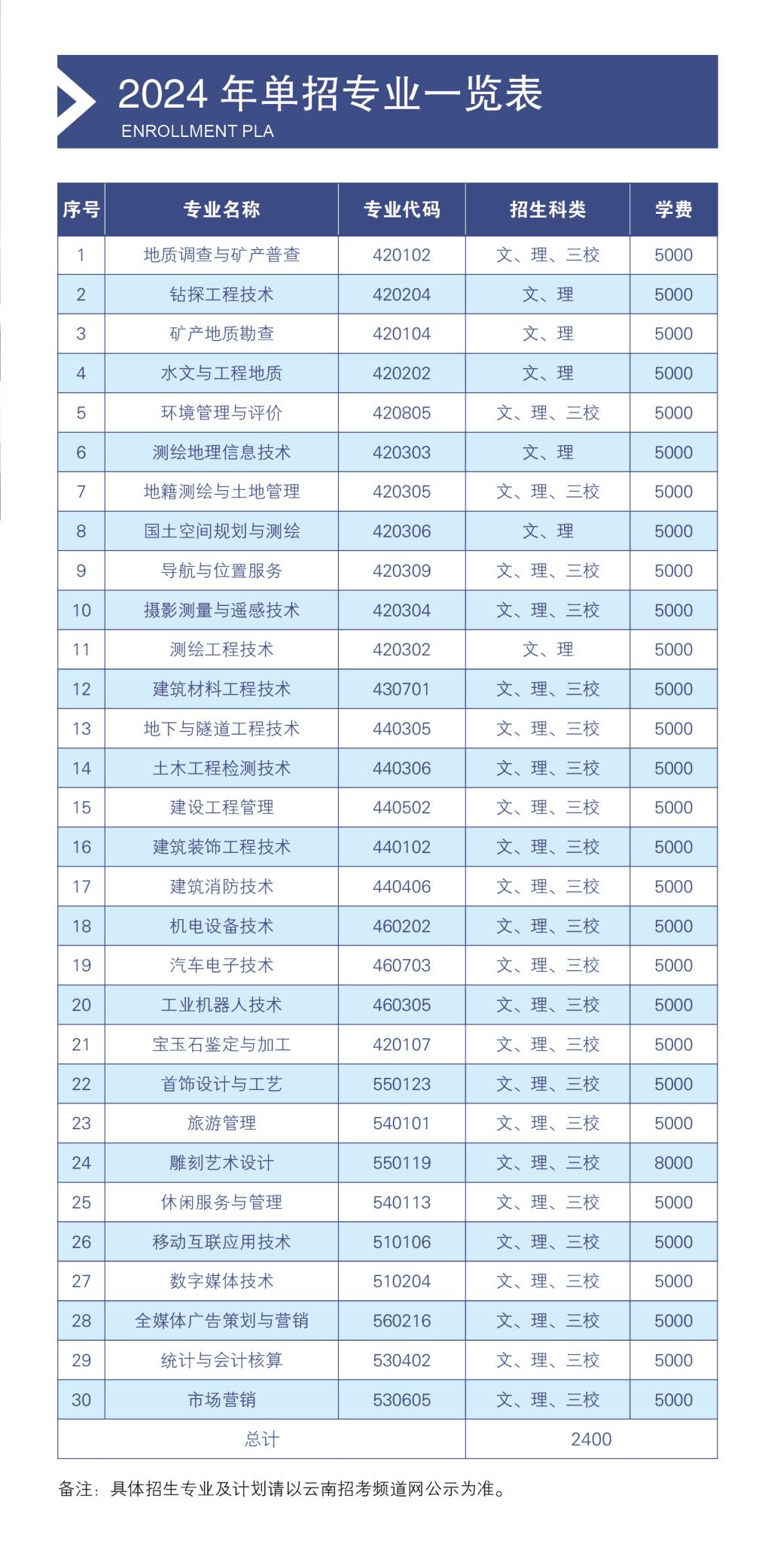 云南国土资源职业学院2024年单独招生考试招生简章