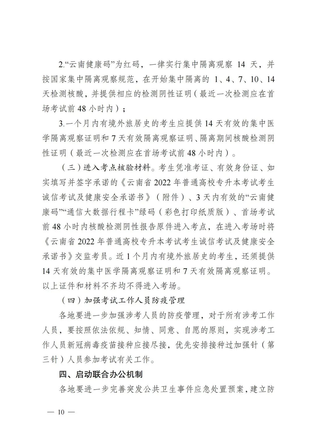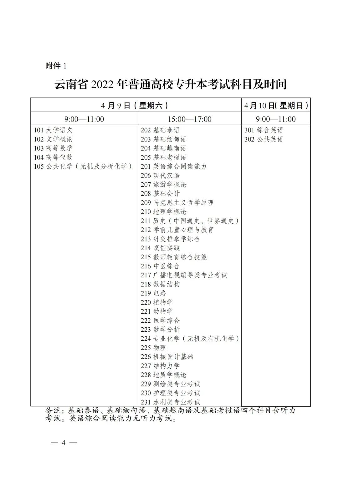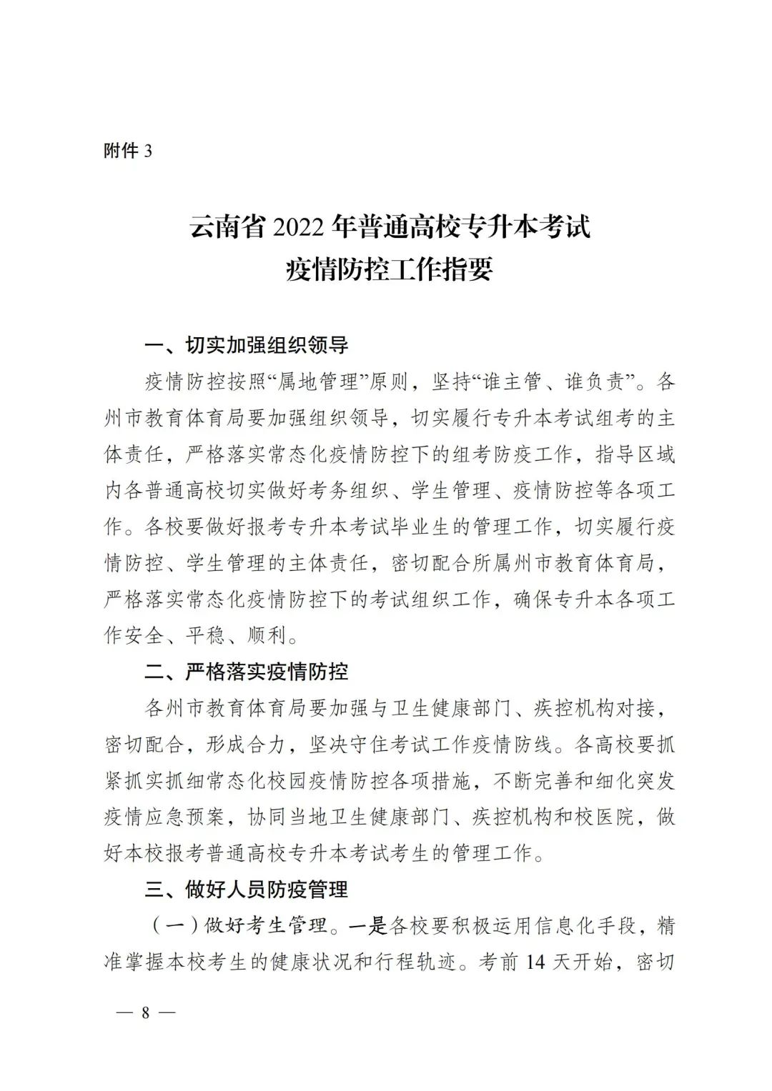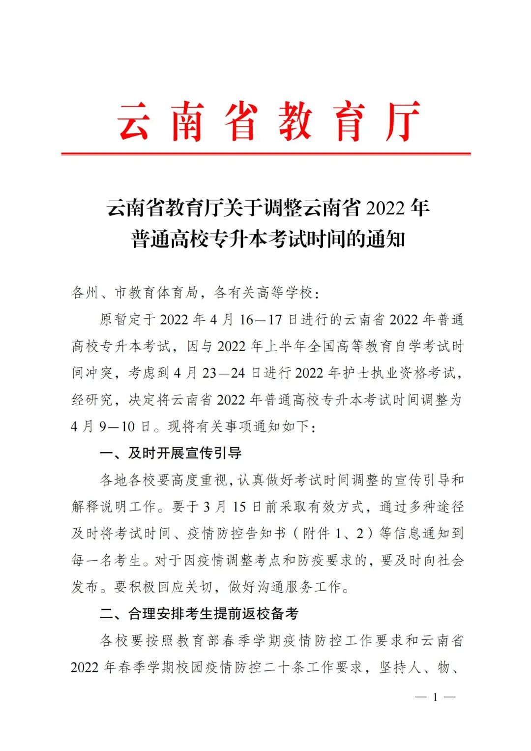 原暂定于2022 年4月16-17日进行的云南省2022年普通高校专升本考试,因与2022年上半年全国高等教育自学考试时间冲突,考虑到4月23-24日进行2022 年护士执业资格考试,经研究,决定将云南省2022年普通高校专升本考试时间调整为4月9-10日。