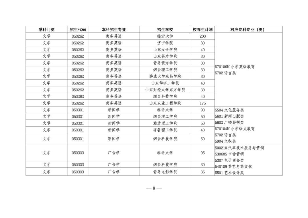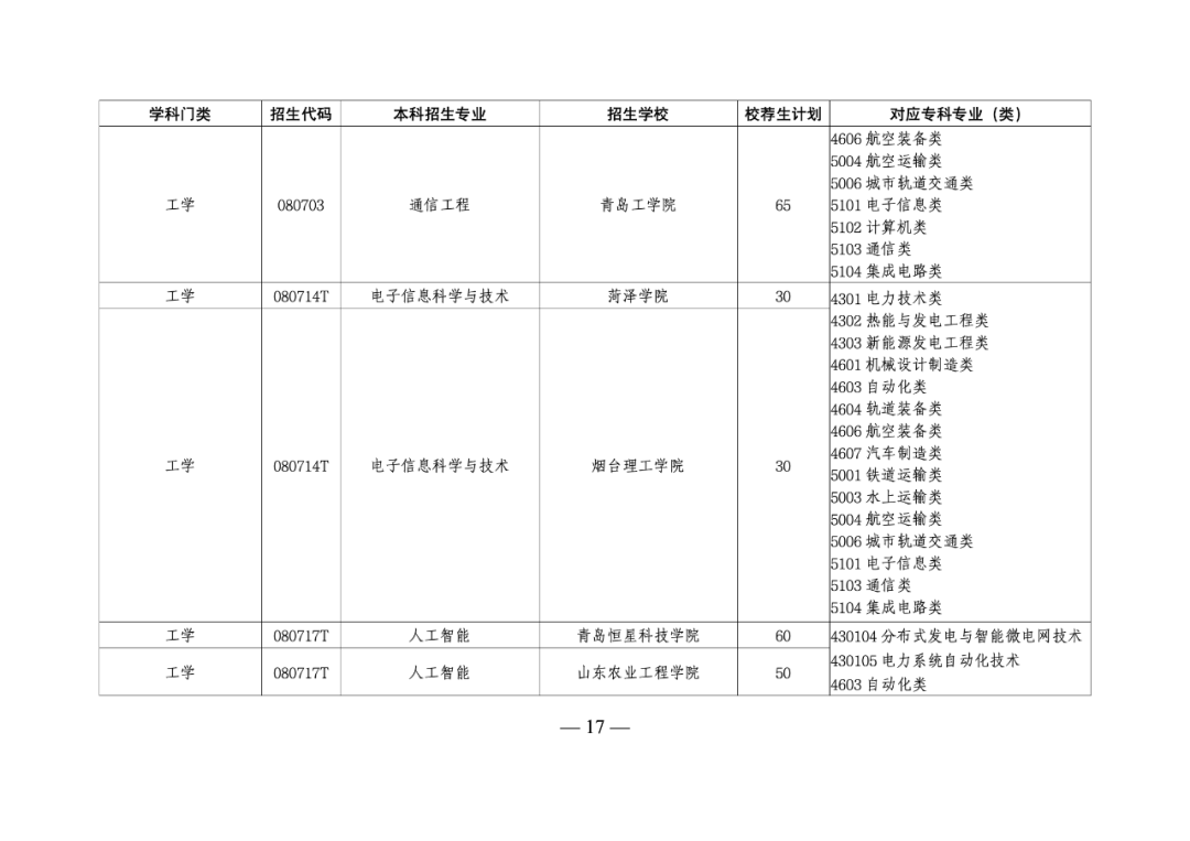 根据《山东省教育厅 山东省人民政府征兵办公室 山东省退役军人事务厅关于做好2025年普通高等教育专科升本科考试招生工作的通知》(鲁教学函〔2024〕28号)等文件要求,现公布我省2025年普通高等教育专科升本科招生校荐生计划(见附件)。