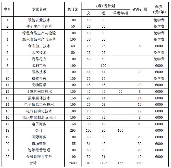 注:免学费专业按政策规定,录取就读该类专业的浙江省户籍学生免交学费,所需经费由浙江省财政负担。